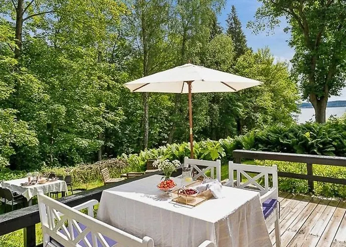 Skovhus Naer Tirsbaek Gods Og Vejle Fjord villa features seaside views of the sea from a terrace.